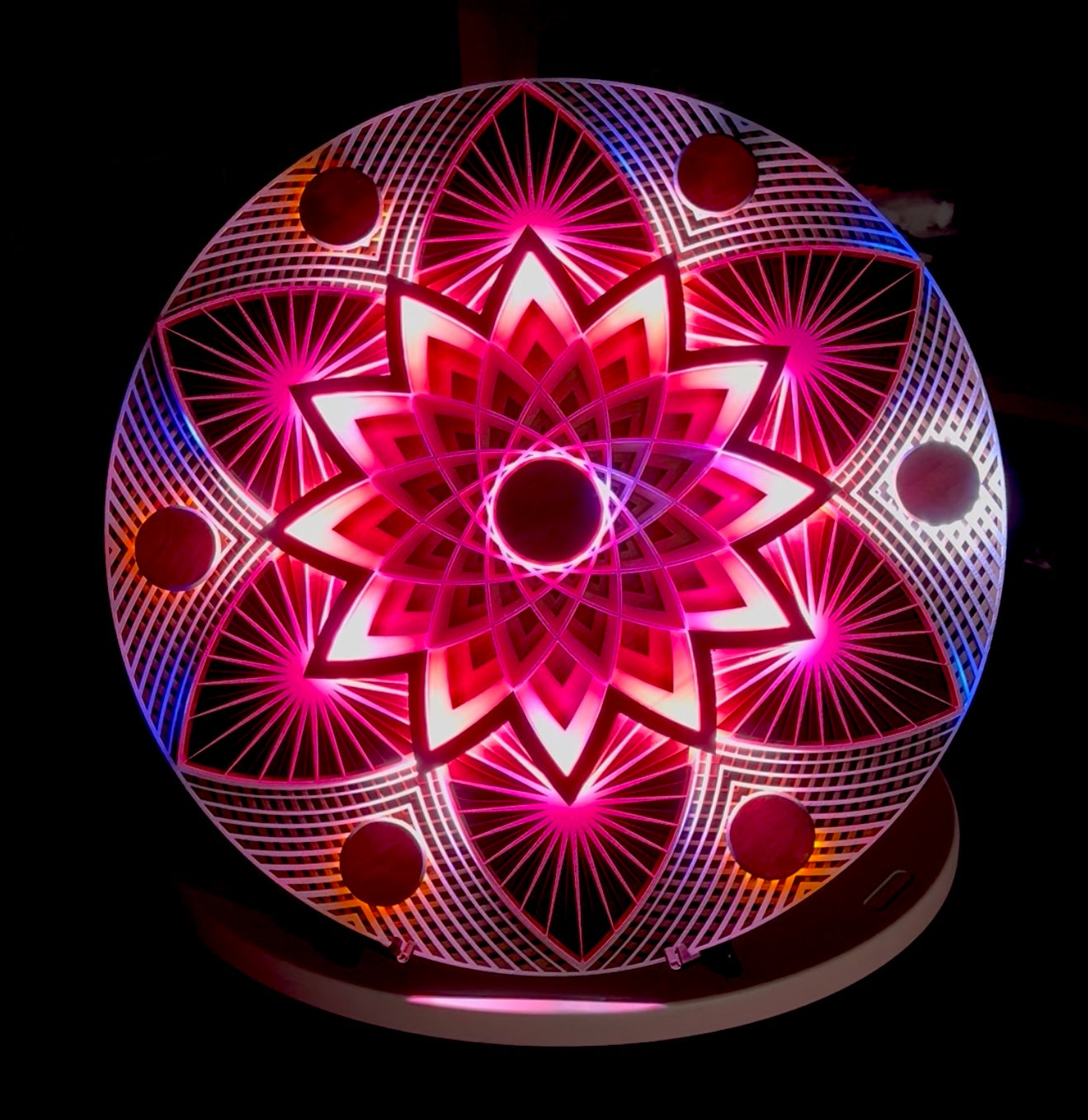 This stunning sculpture pays testament to the subtle, powerful nature of the art of the mandala. A multi-layered, fully mapped piece of integrated LED lighting...